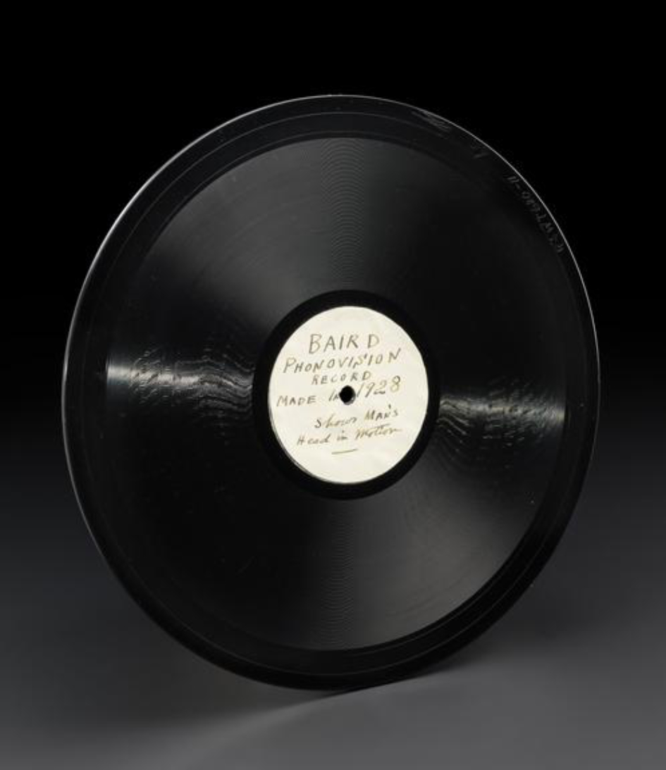 PHONOVISION, THE JOHN LOGIE BAIRD PHONODISC AND TV- 1928. The first videodisc, the Phonodisc, was developed by Scottish inventor John Logie Baird. It was a 250 mm, 78 rpm record, similar to the discs being produced for sound recording at that time. A 30-line television signal was recorded on the Phonodisc. The earliest known consumer recording of a TV broadcast (1933) was onto a Baird Phonodisc. The Phonodisc was not a commercial success and was abandoned in 1936.