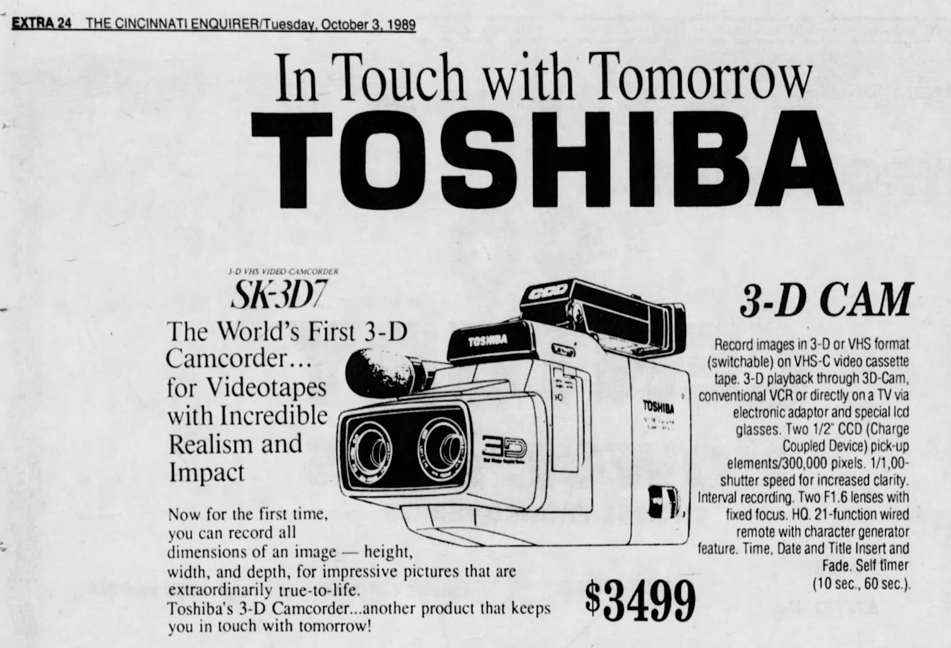 to 1/500 second per field. MSRP $6,395. The above ad is from the October 1989